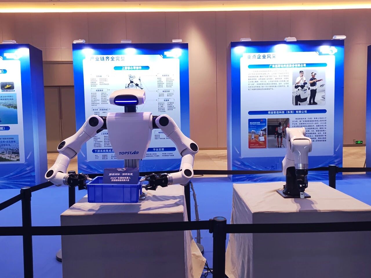 同期,拓斯達(dá)具身智能機(jī)器人產(chǎn)品矩陣——仿人形機(jī)械臂、仿人雙臂機(jī)器人,應(yīng)邀亮相廣智會具身智能機(jī)器人展區(qū),現(xiàn)場演示部件搬運的作業(yè)能力。