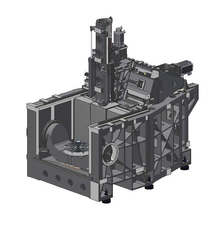 GMU-600為天車龍門結(jié)構(gòu),三軸運動置於底座上,遠(yuǎn)離切削區(qū)域,一體式底座綜合剛性高搖籃轉(zhuǎn)檯簡支於底座上,力流短,承載能力高,Z軸為高響應(yīng)氣壓平衡,有效減輕絲母動負(fù)荷,降低溫昇,延長絲杠壽命,Y軸為四條35mm高剛性滾柱導(dǎo)軌支承,實現(xiàn)出色的動態(tài)效能及精度保持性。